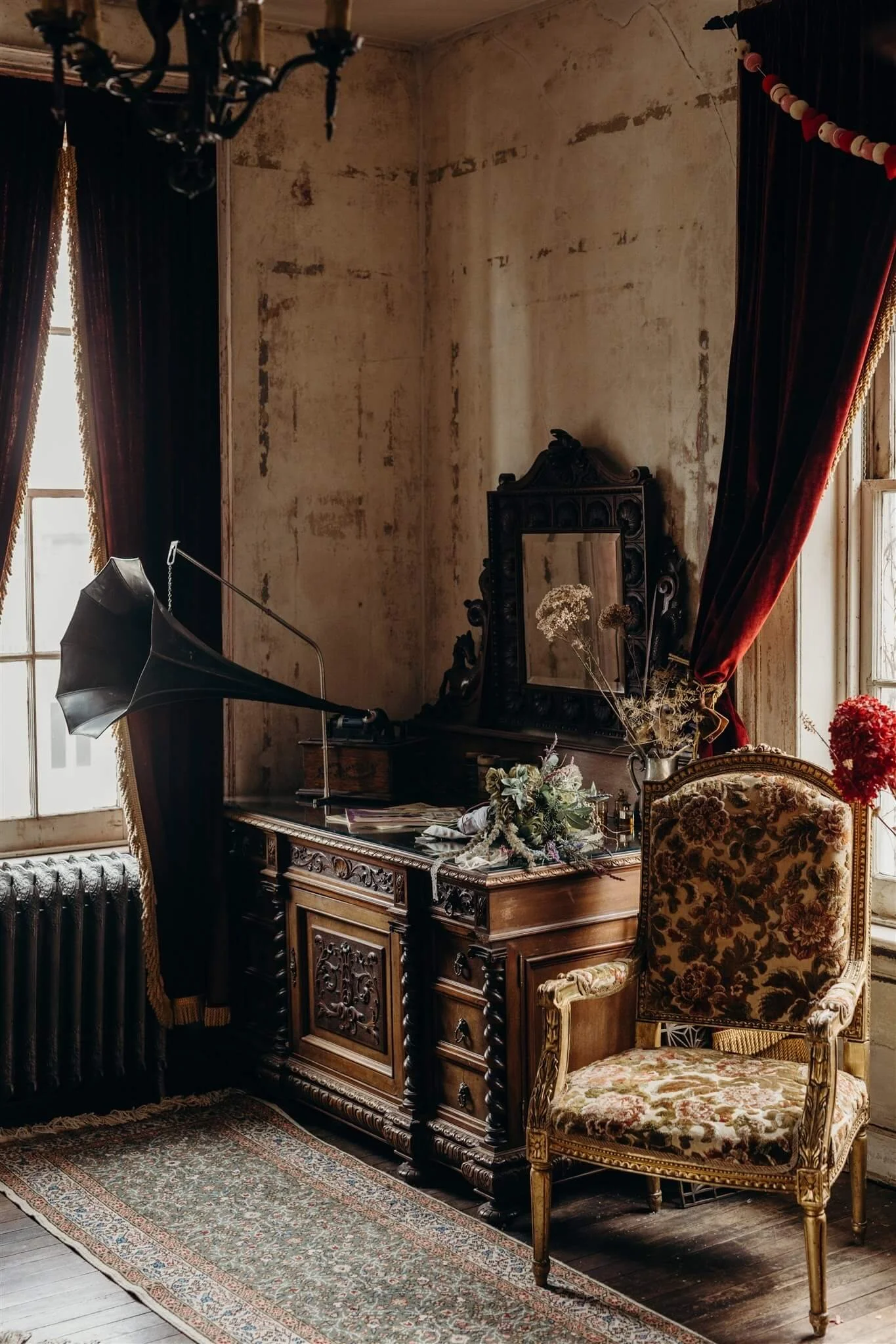 We also curate an additional prop house with a workshop located nearby. Optional unique and antique furnishings can be delivered for use on-site during your shoot or event. The inventory includes: